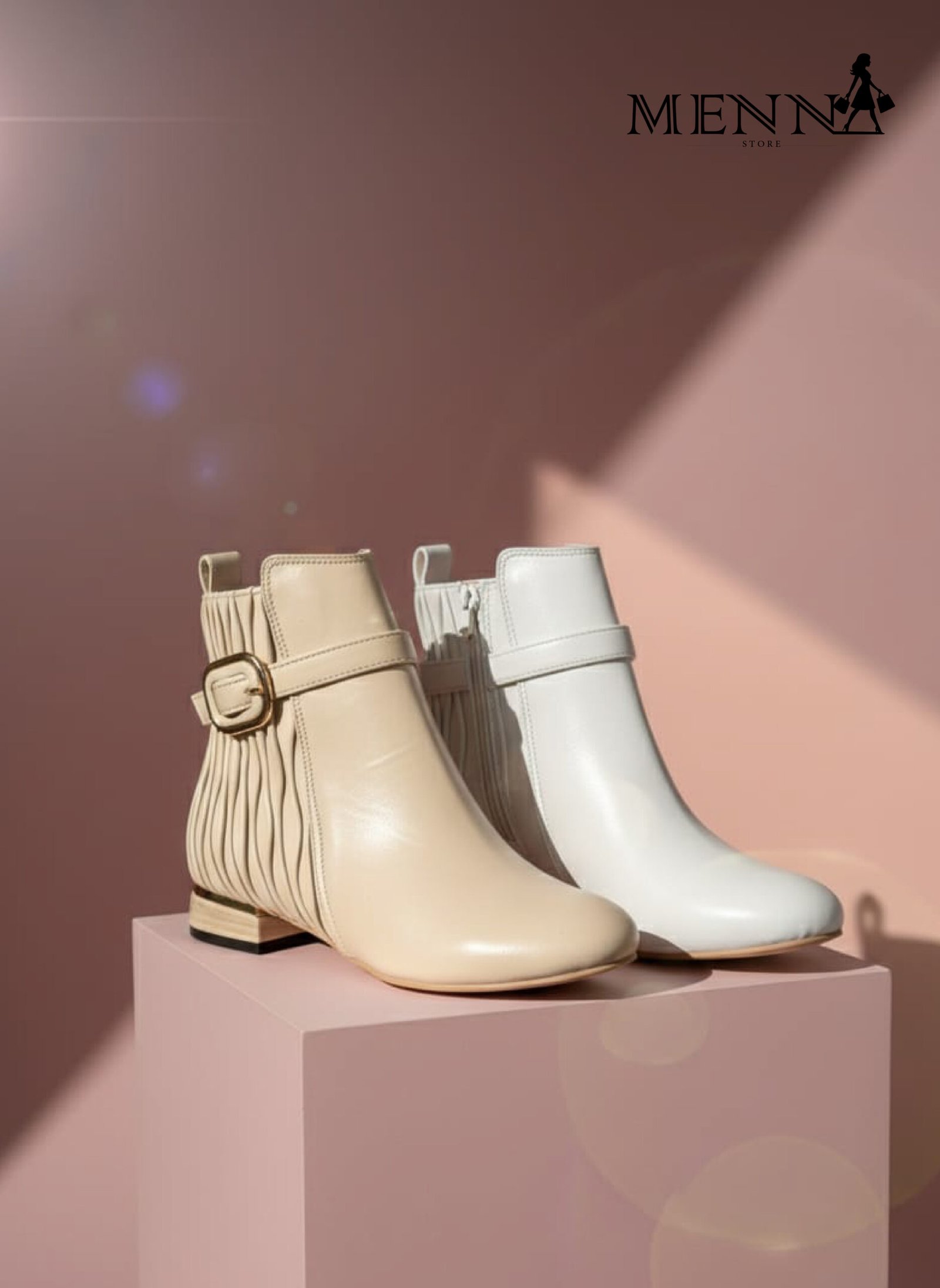 👢 **هاف بوت جلد من MENNA STORE – تصميم متقن لكل تفاصيل الشتاء**