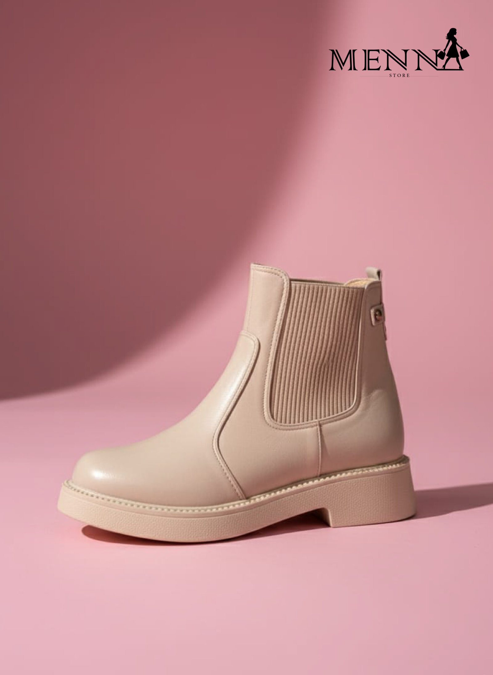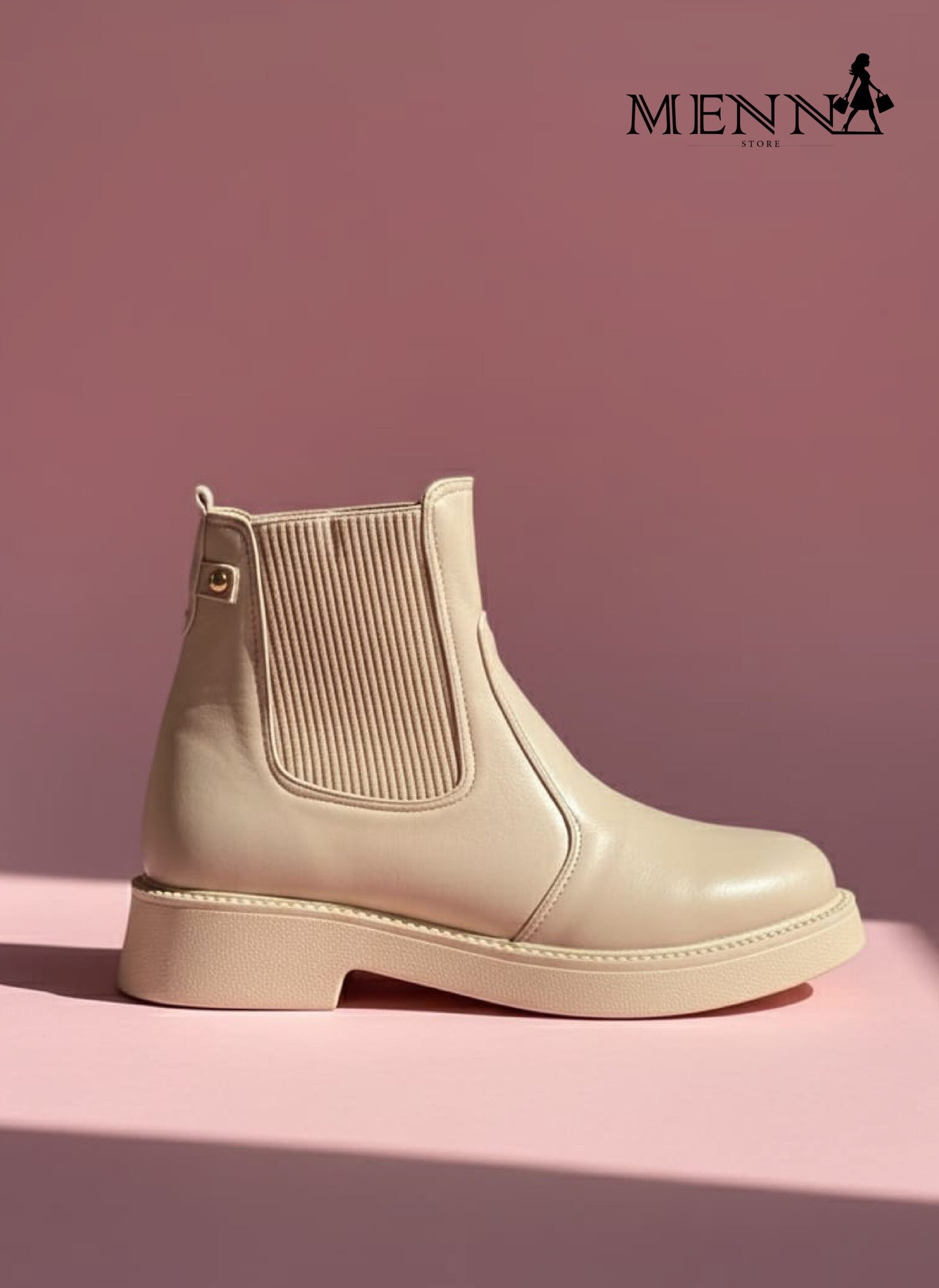 هاف بوت أنيق مصنوع من جلد عالي الجودة بملمس ناعم ومتين، مصمم بإستك جانبي عملي يمنحك سهولة في الارتداء وراحة أكبر أثناء الحركة.