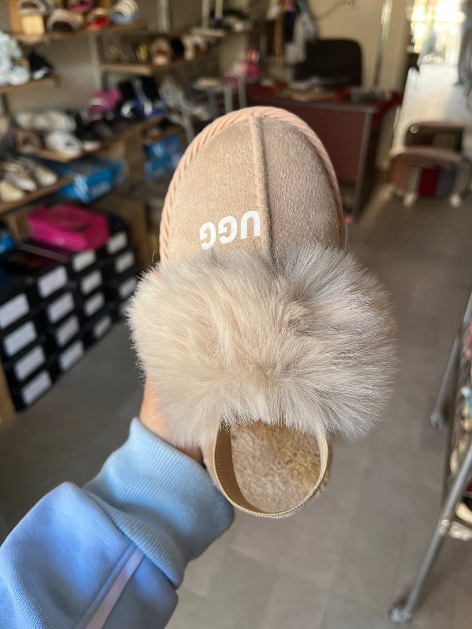 UGG بناتي بتصميم ناعم وراقي، مصنوع من خامات عالية الجودة تمنح قدم بنتك إحساس دافئ ومريح طوال اليوم.